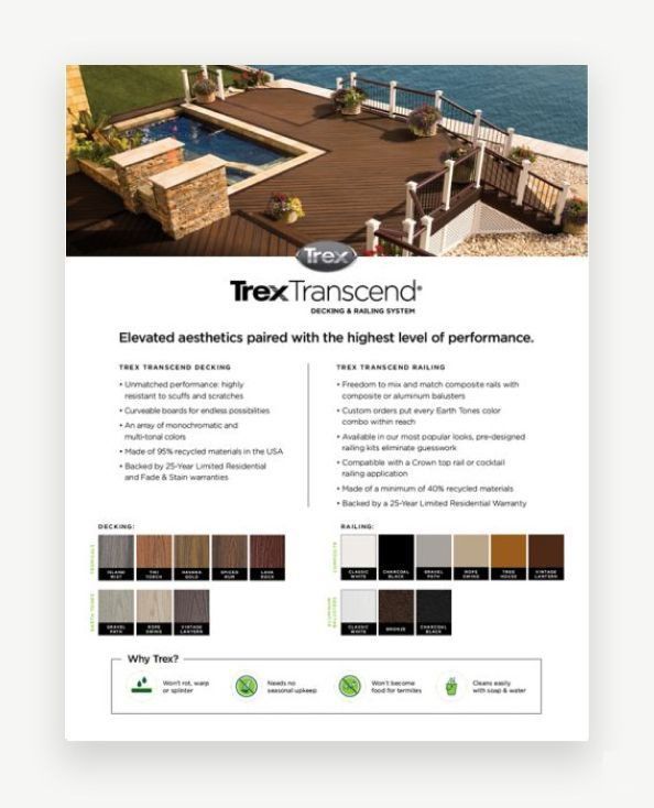 Meanwhile, Trex Enhance® products retain their existing 25-year warranties, offering reliable performance and value. Trex’s comprehensive warranty coverage underscores their dedication to customer satisfaction and product excellence. Furthermore, all Trex decking products continue to be backed by a robust 10-year Commercial Warranty, ensuring that commercial projects can also benefit from Trex’s reliable protection. With these enhanced warranties, Trex solidifies its position as a leader in the decking industry, offering unparalleled assurance and support to both residential and commercial customers.